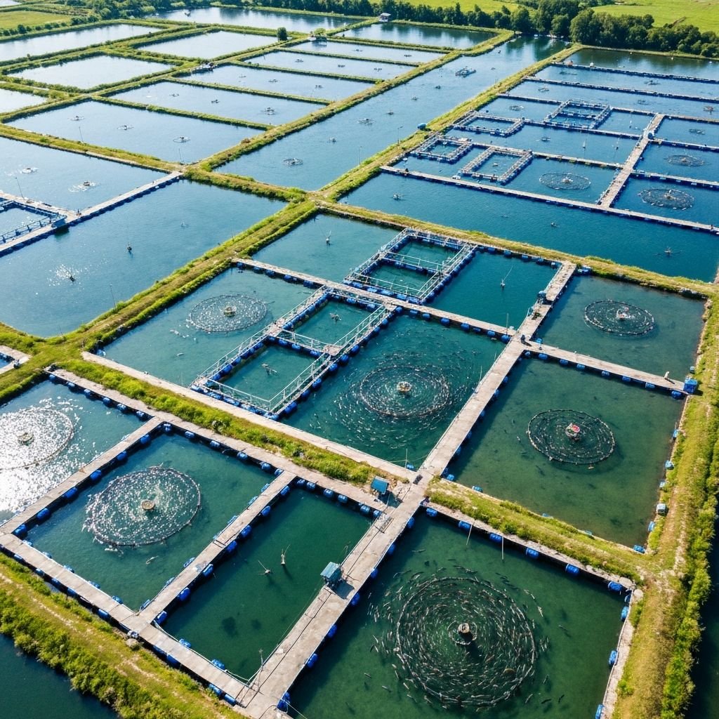 High-protein aquatic nutrition for various fish species in commercial farming.